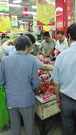 | 炎炎夏日,西甜瓜類商品無(wú)疑是廣大顧客的消費(fèi)首選。天惠超市為滿足廣大顧客的需求,經(jīng)與朝陽(yáng)農(nóng)產(chǎn)品的大市場(chǎng)對(duì)接,像麒麟、特小鳳西瓜和小白龍、西州蜜甜瓜等十余款不同品種的西甜瓜每日足量供應(yīng);并堅(jiān)持薄利多銷,讓利給廣大消費(fèi)者。特別是近日組織的小白龍?zhí)鸸,不僅口感清脆香甜,價(jià)格上更是勁爆特惠僅需2.0元/斤,受到了廣大顧客的熱烈歡迎,單品日均銷售量達(dá)到5噸以上。 2017年以來,天惠超市針對(duì)水果供應(yīng)做出了積極的調(diào)整。在季節(jié)性大品種上做到量足價(jià)低的同時(shí),更進(jìn)一步增加了如櫻桃、黃油桃各類花色水果品種以及像榴蓮、火龍果、山竹、藍(lán)莓等一些年輕人喜愛的進(jìn)口水果供應(yīng)。不但滿足和豐富了不同顧客群體的消費(fèi)需求和選擇空間,并在定價(jià)上沒有因?yàn)樾”娖贩N和進(jìn)口水果的身份提高毛利空間,仍舊以平價(jià)親民的價(jià)格供應(yīng)給廣大消費(fèi)者。