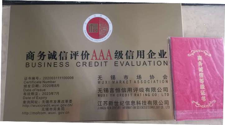 無錫朝陽糧油市場有限公司被評為商務(wù)誠信評價AAA級信用企業(yè)