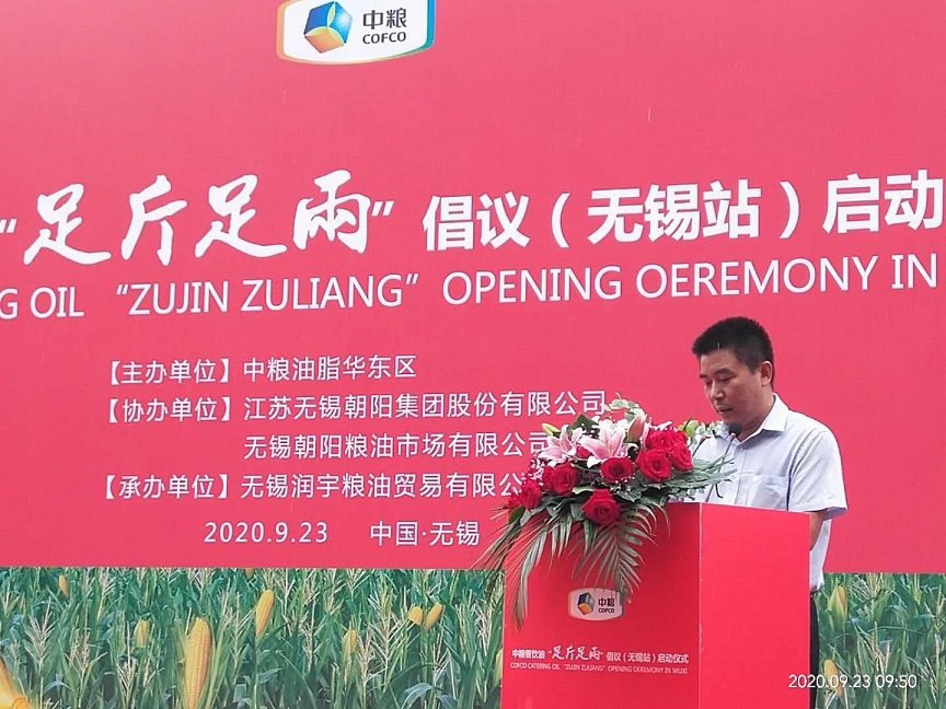 9月23日上午,中糧餐飲油“足斤足兩”倡議(無錫站)啟動(dòng)儀式在無錫朝陽糧油市場(chǎng)隆重舉行。 活動(dòng)儀式上,朝陽糧油市場(chǎng)攜手中糧油脂華東區(qū)共同發(fā)出倡導(dǎo):“響應(yīng)國(guó)家號(hào)召,厲行勤儉節(jié)約,倡導(dǎo)誠(chéng)實(shí)守信;加強(qiáng)行業(yè)自律,推進(jìn)糧食安全信用體系建設(shè),踐行企業(yè)責(zé)任;我們倡議糧油經(jīng)營(yíng)戶要始終堅(jiān)持誠(chéng)信經(jīng)營(yíng),重合同,守信用,堅(jiān)持銷售合法合規(guī)、足斤足兩的糧油商品。 朝陽糧油市場(chǎng)總經(jīng)理徐軍代表市場(chǎng)做了主旨發(fā)言,無錫朝陽糧油市場(chǎng)將一如既往的秉承食品安全監(jiān)督的職責(zé),繼續(xù)履行糧油安全保供的社會(huì)責(zé)任,全力保障無錫糧油供應(yīng)安全,全力服務(wù)經(jīng)營(yíng)戶做大、做強(qiáng),努力打造一個(gè)市民滿意、經(jīng)營(yíng)戶滿意的文明規(guī)范的糧油交易品牌市場(chǎng)。(楊敏)