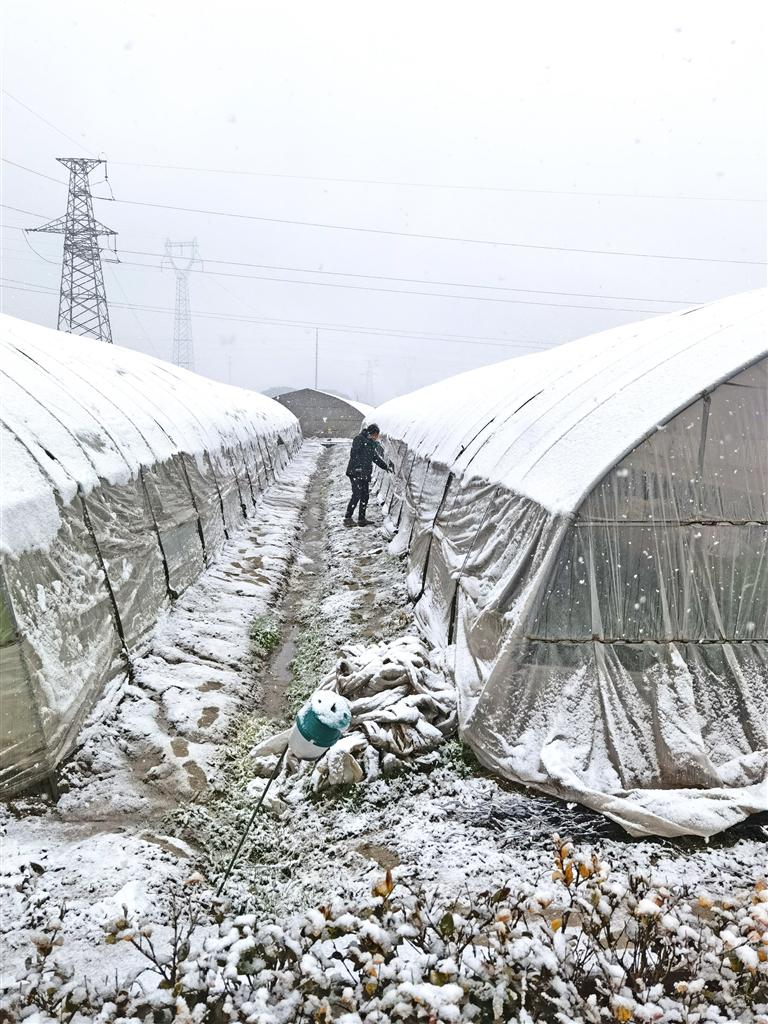 在蔬菜種植戶看來,這場雪對本地蔬菜影響也不大!芭飪(nèi)溫度都在零度以上,雪在棚里掛不住,一些棚上的雪開始化掉往下滑了!被萆絽^(qū)益家康蔬菜基地技術人員告訴記者,雖然根據(jù)天氣預報來看問題不大,但擔心萬一晚上突然雪下大了來不及放膜,因此公司統(tǒng)一派工作人員為這些農(nóng)戶放膜閉棚,為棚內(nèi)保溫。與此同時,對于不種菜的空棚,也督促農(nóng)戶及時放膜保溫。