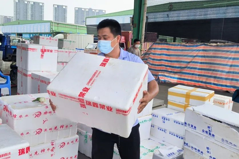 此外,市場(chǎng)發(fā)揮場(chǎng)地優(yōu)勢(shì),采取冷庫(kù)保鮮及現(xiàn)場(chǎng)銷售的混合模式,以目前每日蔬果供應(yīng)量的兩倍進(jìn)行動(dòng)態(tài)存量?jī)?chǔ)存,隨時(shí)應(yīng)對(duì)廣大市民的“菜籃子”供應(yīng)需求,此舉快速穩(wěn)定地平抑了市場(chǎng)價(jià)格。蔬菜方面,均價(jià)穩(wěn)定在1.7元/斤,與往年同期相比也屬于中低價(jià)位,主力品種價(jià)格穩(wěn)定,其中土豆、甘藍(lán)包菜、生菜均價(jià)分別保持在1.1元/斤、1.2元/斤和1.9元/斤左右;水果方面,西瓜、葡萄、水蜜桃等夏季時(shí)令水果均價(jià)分別保持在2元/斤、8元/斤和7元/斤左右?傮w來(lái)說(shuō),蔬果價(jià)格并未因疫情影響而大幅波動(dòng),朝陽(yáng)農(nóng)產(chǎn)品大市場(chǎng)不折不扣地完成了“菜籃子”工程的兩大核心任務(wù):保證供應(yīng)量,穩(wěn)定市場(chǎng)價(jià)格。 為保證市內(nèi)外會(huì)員正常拿貨,市場(chǎng)還特別推行了“代采購(gòu) 代配送”服務(wù),即會(huì)員與客商達(dá)成交易后,由市場(chǎng)員工牽頭,負(fù)責(zé)安排車輛運(yùn)送至目的地,此舉不僅成功聯(lián)通了市場(chǎng)、供應(yīng)商與會(huì)員,成功探索了一條保供“新鏈條”,更確保疫情時(shí)期商品能夠正常流入終端市場(chǎng),真正形成安全、有序、共贏的“疫時(shí)供應(yīng)新局面”。