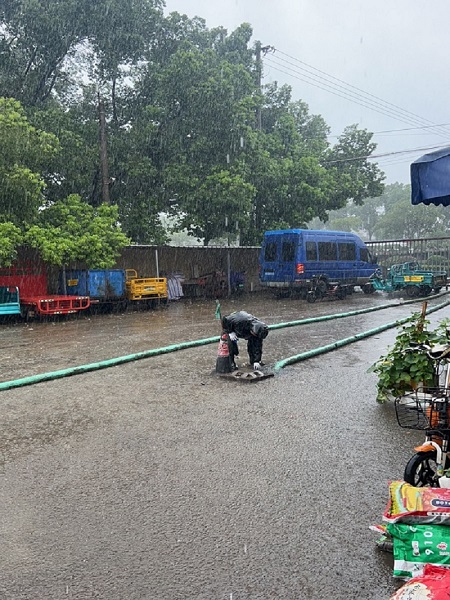 7月30日凌晨至8月2日下午受臺風(fēng)影響,朝陽北區(qū)遭遇持續(xù)強(qiáng)降雨天氣,累計(jì)降水量激增。市場周邊北濱路出現(xiàn)嚴(yán)重積水,最深處已超腰部,市場內(nèi)部北庫負(fù)一層及老副食品區(qū)域也出現(xiàn)明顯積水情況,對正常經(jīng)營秩序構(gòu)成阻礙。 面對突如其來的汛情,朝陽糧油市場防汛應(yīng)急機(jī)制立即高效啟動(dòng)。市場管理方第一時(shí)間拉響警報(bào),嚴(yán)格依據(jù)防汛應(yīng)急預(yù)案,組織搶險(xiǎn)力量火速奔赴積水區(qū)域。應(yīng)急小組迅速調(diào)集并堆積沙袋、緊急啟用排水設(shè)備,爭分奪秒對北庫負(fù)一層和老副食品區(qū)等重點(diǎn)部位進(jìn)行強(qiáng)排作業(yè),最大限度控制積水蔓延。與此同時(shí),安全巡查密度全面升級,實(shí)行24小時(shí)值班值守,嚴(yán)密監(jiān)控市場各區(qū)域水位變化及建筑安全狀況,確保險(xiǎn)情早發(fā)現(xiàn)、早處置。 暴雨考驗(yàn)應(yīng)急能力,行動(dòng)詮釋責(zé)任擔(dān)當(dāng)。此次防汛響應(yīng)充分檢驗(yàn)了集團(tuán)通過的防汛預(yù)案的科學(xué)性與北區(qū)隊(duì)伍的戰(zhàn)斗力。目前,市場正有序組織后續(xù)清淤消殺及設(shè)施檢修工作,堅(jiān)決筑牢汛期安全防線,全力守護(hù)“大后方”的平穩(wěn)運(yùn)行,為區(qū)域民生保障提供堅(jiān)實(shí)支撐。
